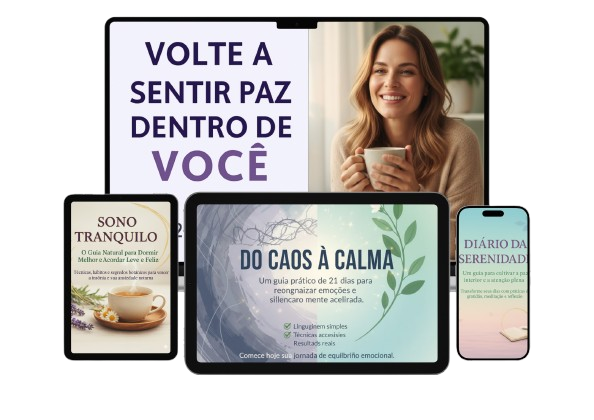 Não. O guia é focado em técnicas 100% naturais e de autoaplicação, baseadas na neurociência para acalmar seu sistema nervoso e silenciar a mente. Ele é um complemento poderoso e prático, mas não substitui o acompanhamento médico ou terapêutico em casos graves.