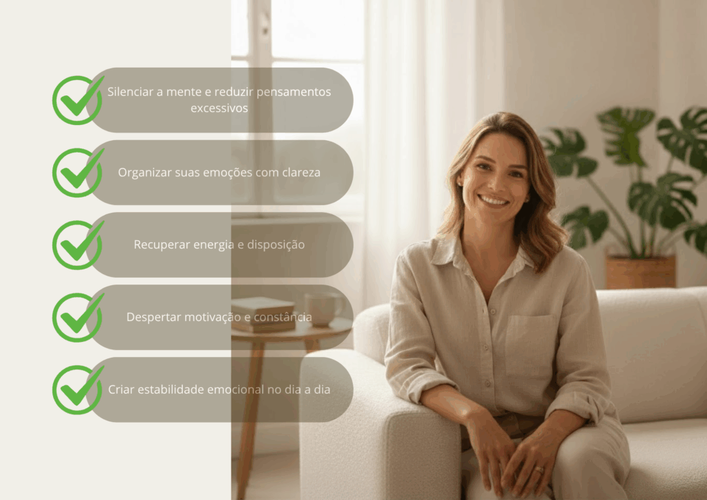 Um método simples para mulheres que querem parar de se sentir sobrecarregadas e finalmente viver com leveza, foco e estabilidade emocional.